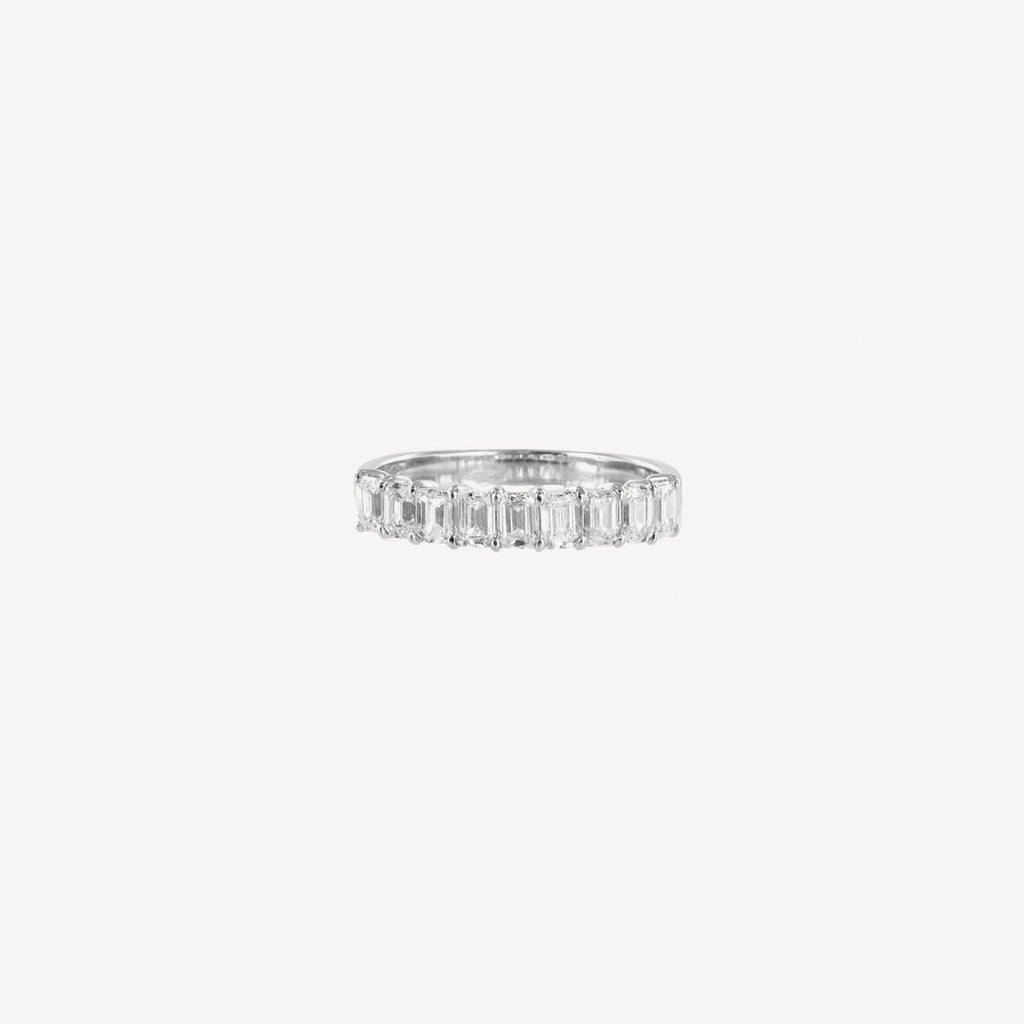 Alliance demi-tour en or blanc 750/1000ème sertie de 9 diamants taille émeraude pour 1ct06.