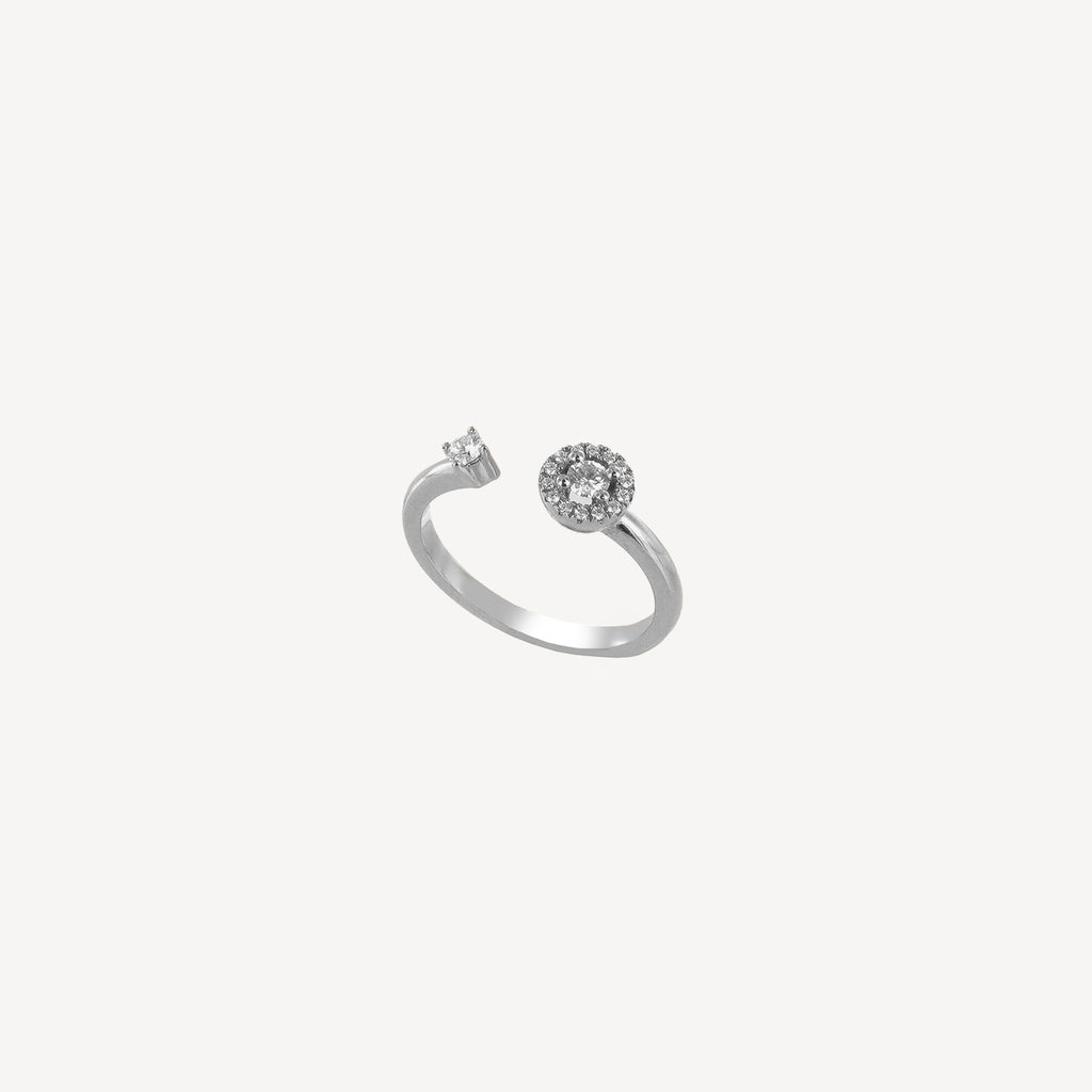 Bague ouverte en or blanc 750/1000ème sertie de 0CT21 de diamants taille brillants.