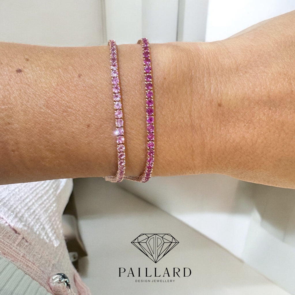Bracelet en or rose 750/1000ème serti de 4cts44 de saphirs roses.