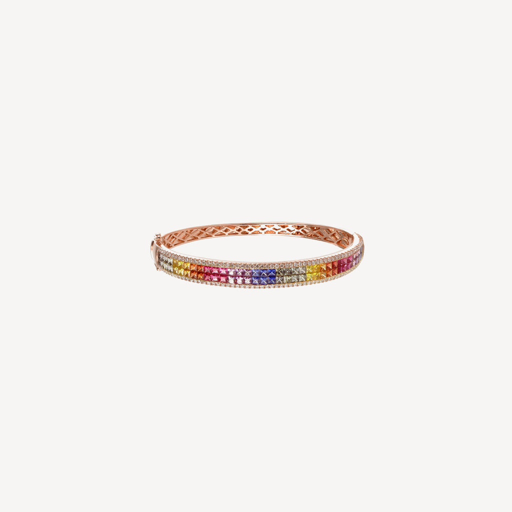 Bracelet jonc en Or Rose serti de 72 saphirs pour 5cts39 et de 116 diamants pour 0ct93.