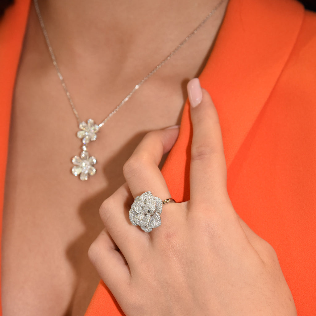 Bague fleur en or blanc 750/1000ème sertie de 1ct80 de diamants.