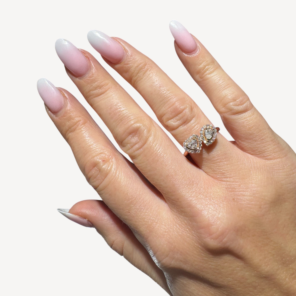 Bague en or rose 750/1000ème sertie de un diamant cœur 0ct31, de un diamant poire 0ct21 et de 0ct29 de brillants.