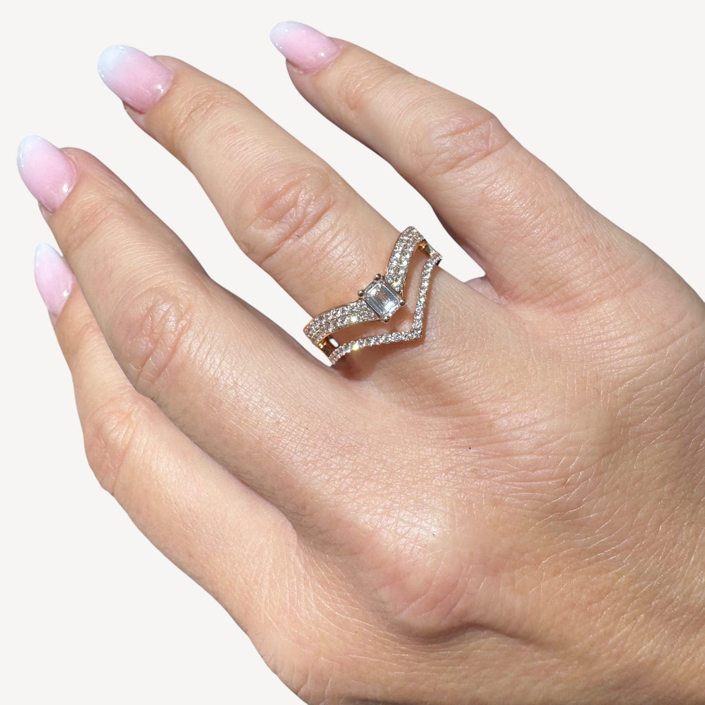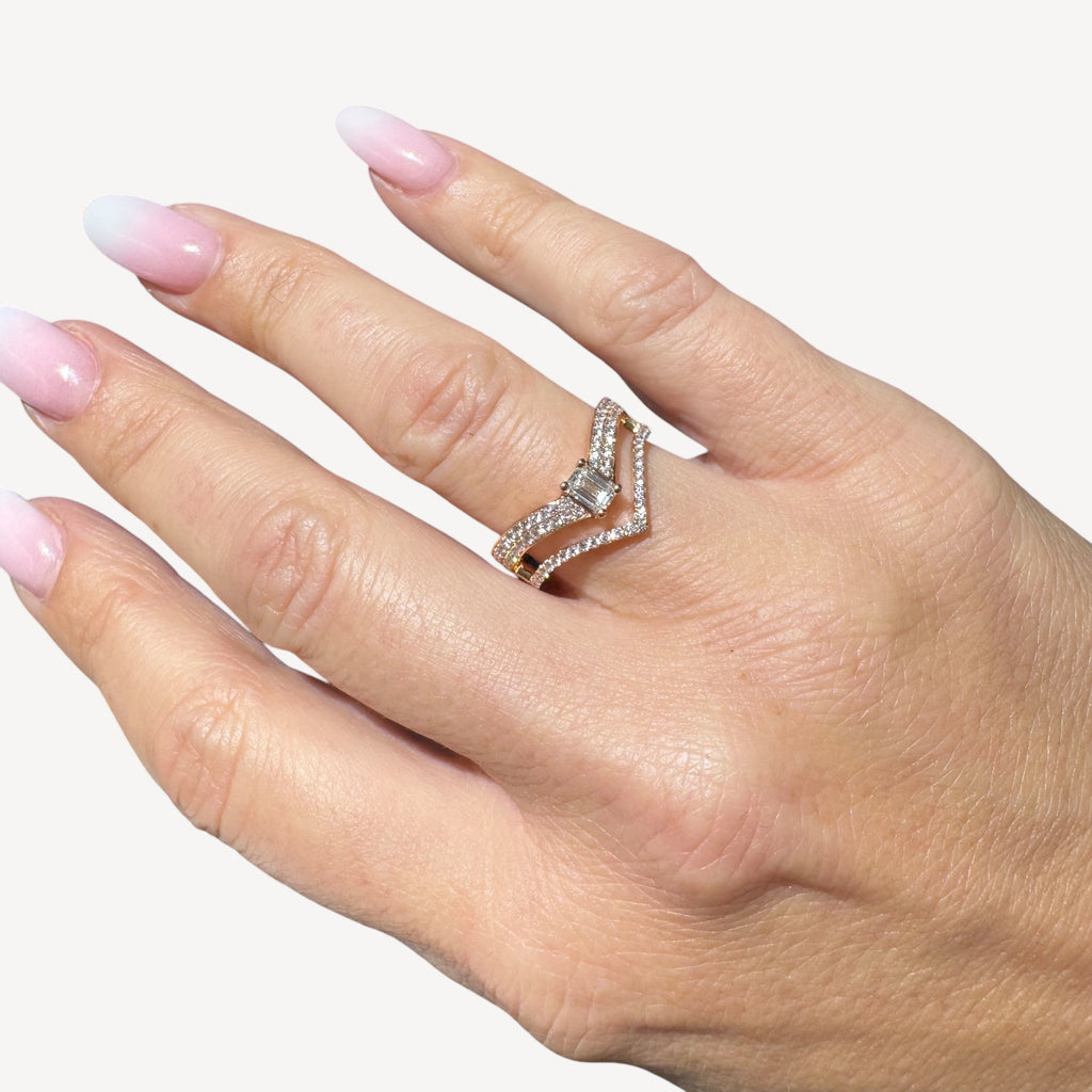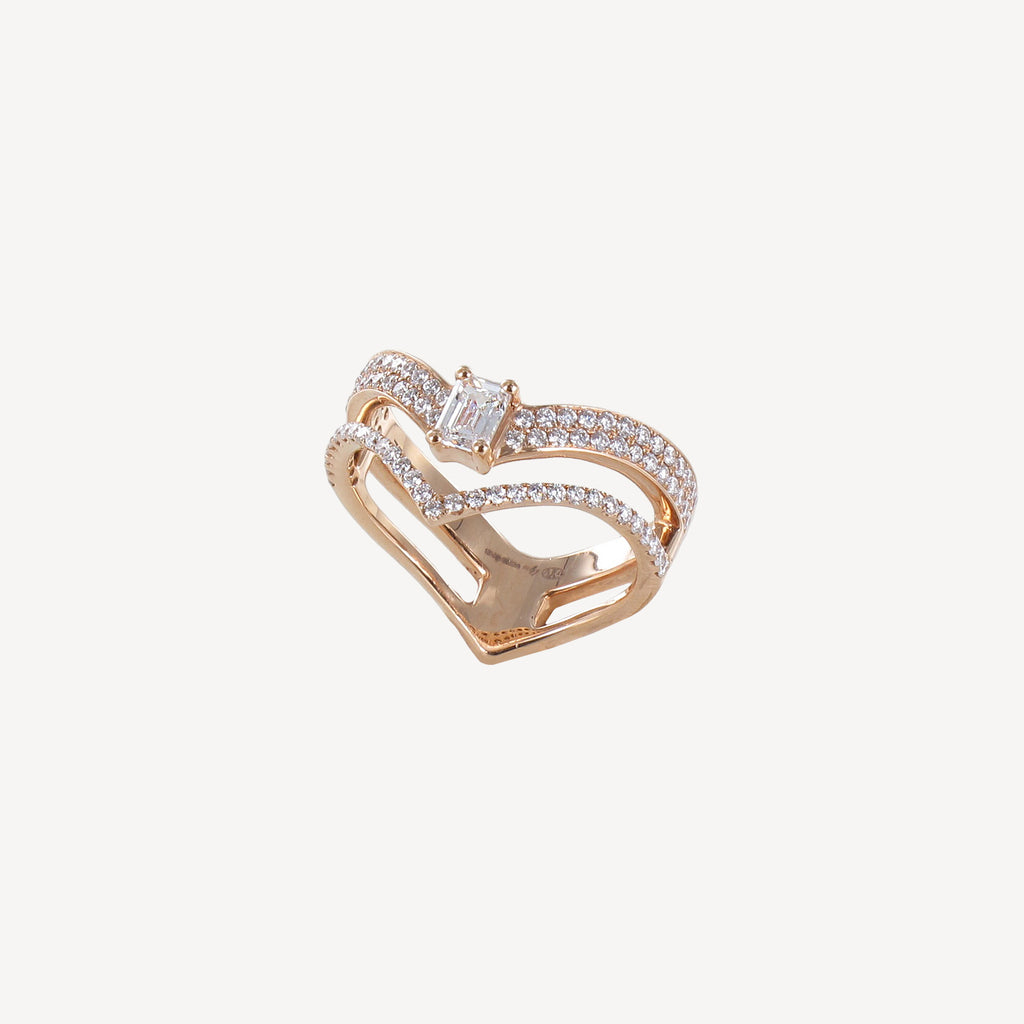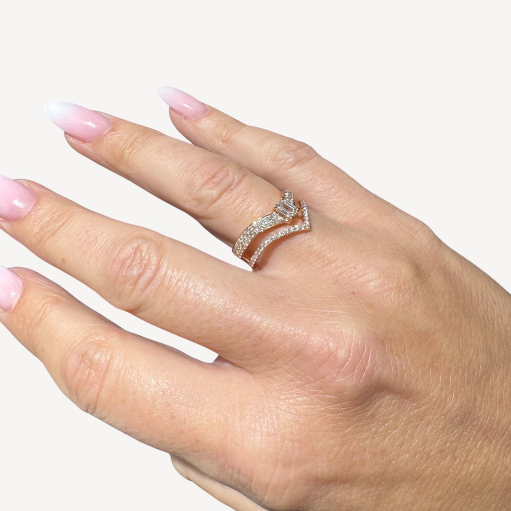 Bague en or rose 750/1000ème d'un diamant taille émeraude au centre et de diamants taille brillants pour 0ct85