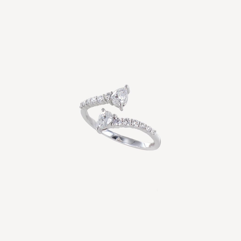 Bague en or blanc 750/1000ème sertie de 2 diamants poires 0ct35 et de 12 diamants pour 0ct22.