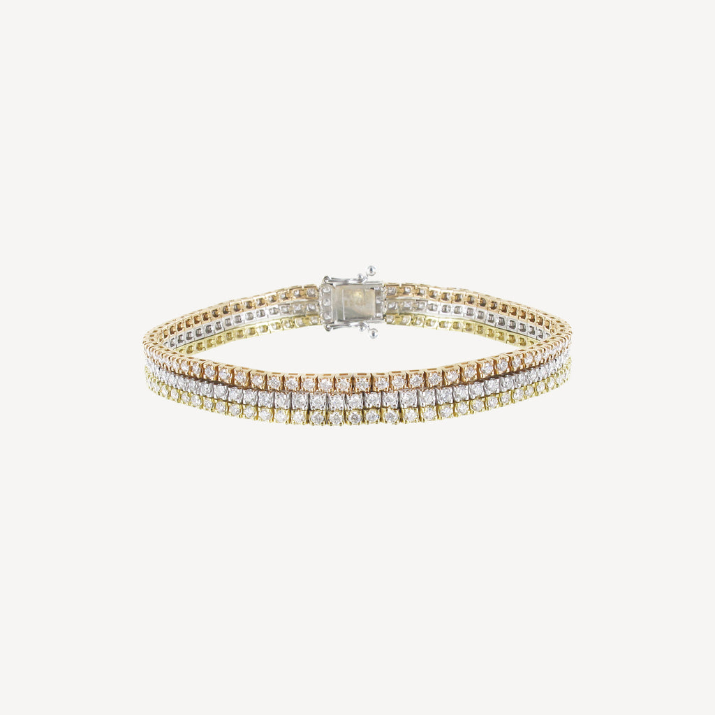 Triple bracelet rivière en or rose, or blanc et or jaune 750/1000ème serti de 219 diamants pour 4cts64.