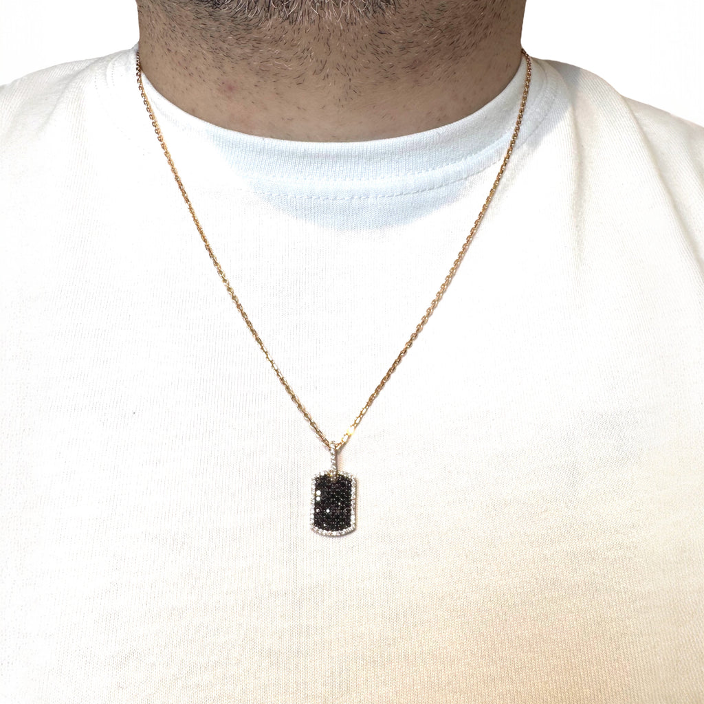 Pendentif Plaque en or blanc pavée de 60 diamants noirs pour 0cts85 et de diamants blancs pour 0ct34.