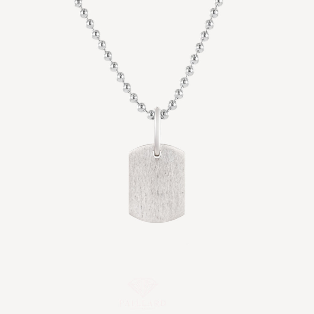 Hauteur de la plaque bélière incluse 2.4cm (1.6cm sans la bélière). Largueur de la plaque : 1.1cm