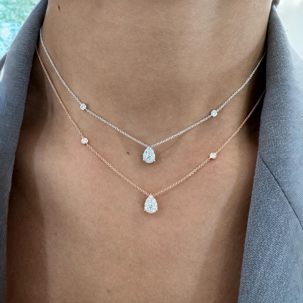 Collier en or blanc 750/1000ème serti de 0ct25 de diamants taille brillant dont 2 sur chaîne.