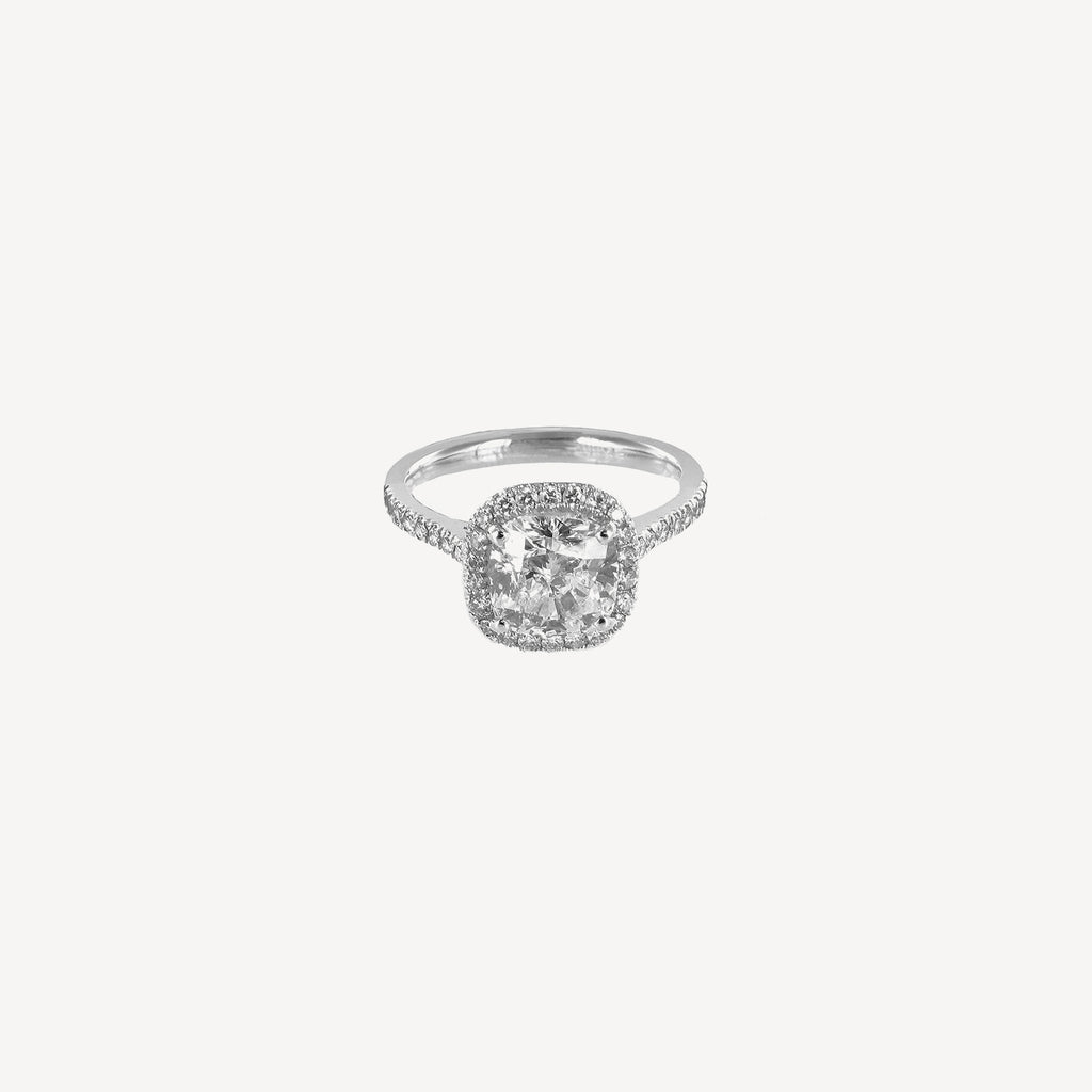 Solitaire en or blanc 750/1000ème serti d' un diamants taille coussin de 2CTS01 certifié HRD GVS2 au centre. Monture sertie de 0ct32 de diamants.